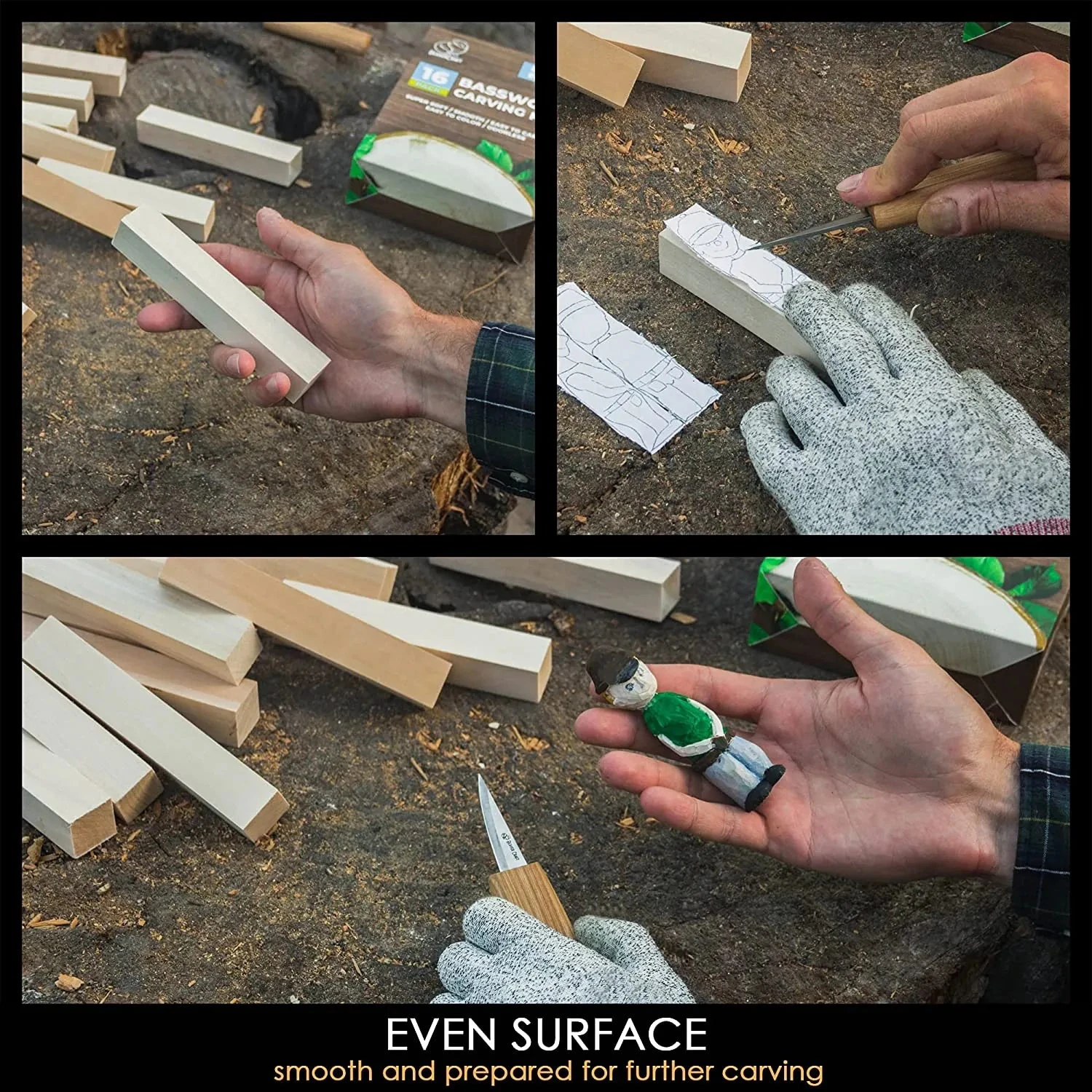 The BeaverCraft team helps you set up your wood carving process in the most convenient way, so you have only fun without worrying about the accompanying nuances. The perfect-quality wood for successful woodcarving is as fundamental as reliable whittling tools.