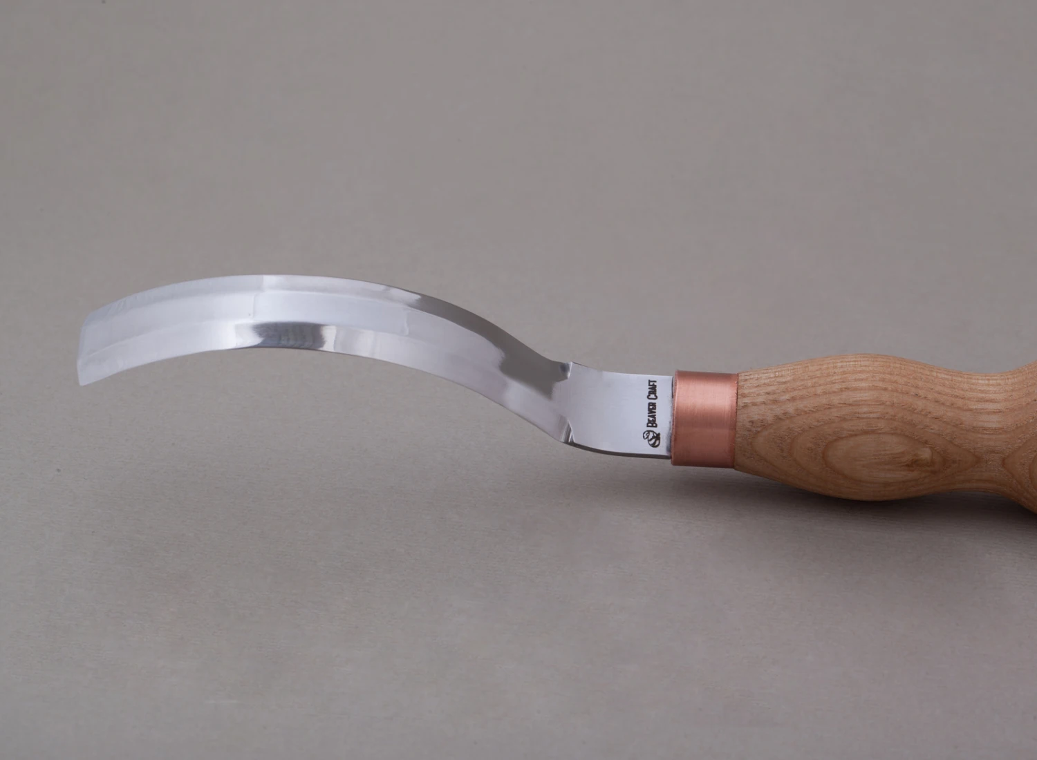 The BeaverCraft SK3 Large Spoon Carving Knife with Long Handle is an excellent tool for rounding edges, carving out spoons, bowls, and kuksa cups, and other deeply hollowed items. The knife features a half-rounded, double-sided blade making it usable both right and left handed. The long handle reduces fatigue from longer carving sessions.