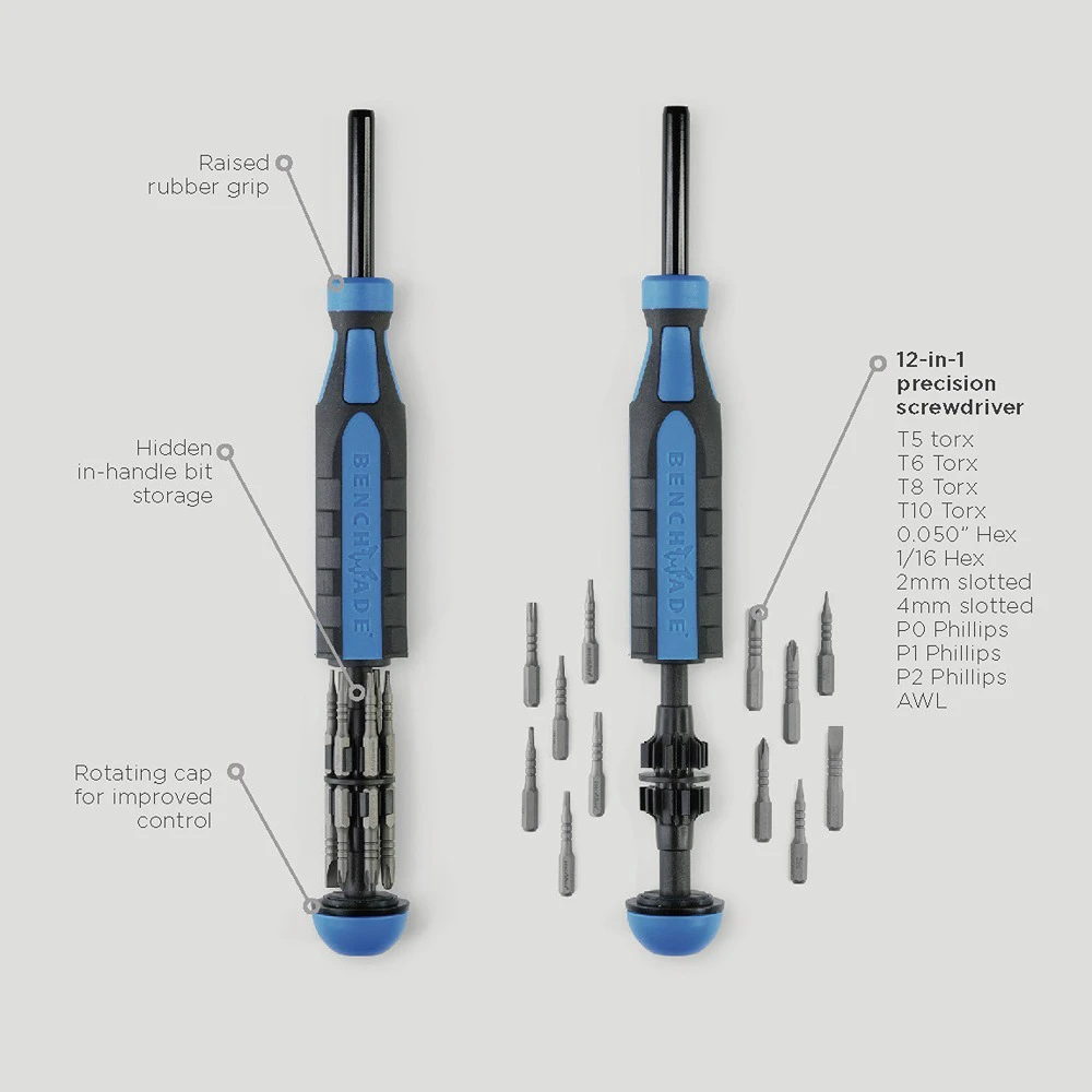Tackle daily maintenance tasks with the Benchmade knifesmith multi-bit driver. The ergonomic driver handle was specifically designed for in hand comfort. Featuring 12 precision bit tips, you’ll have everything you need to service your Benchmade and complete other tasks at home or on the go.