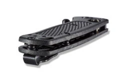 Benchmade’s all-black variant of the Mini Bugout packs a mean punch, and does it with class. The Mini Bugout maintains the same material configuration as its full-sized counterparts in a 42 gram package. Mini Deep Carry clip with black oxide finish. With a closed length of less than 10cm, this ultralight folder is small enough for a mint tin, yet big enough for adventure. This version 533BK-2 features black DLC-finished blade and black CF-Elite® handle.