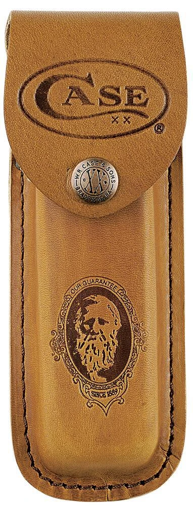 This genuine leather sheath is an essential accessory for any medium to large size pocket knife. Great for protecting and storing your pocket knife for quick and easy access. The genuine leather belt sheath is stamped with the Job Case logo.