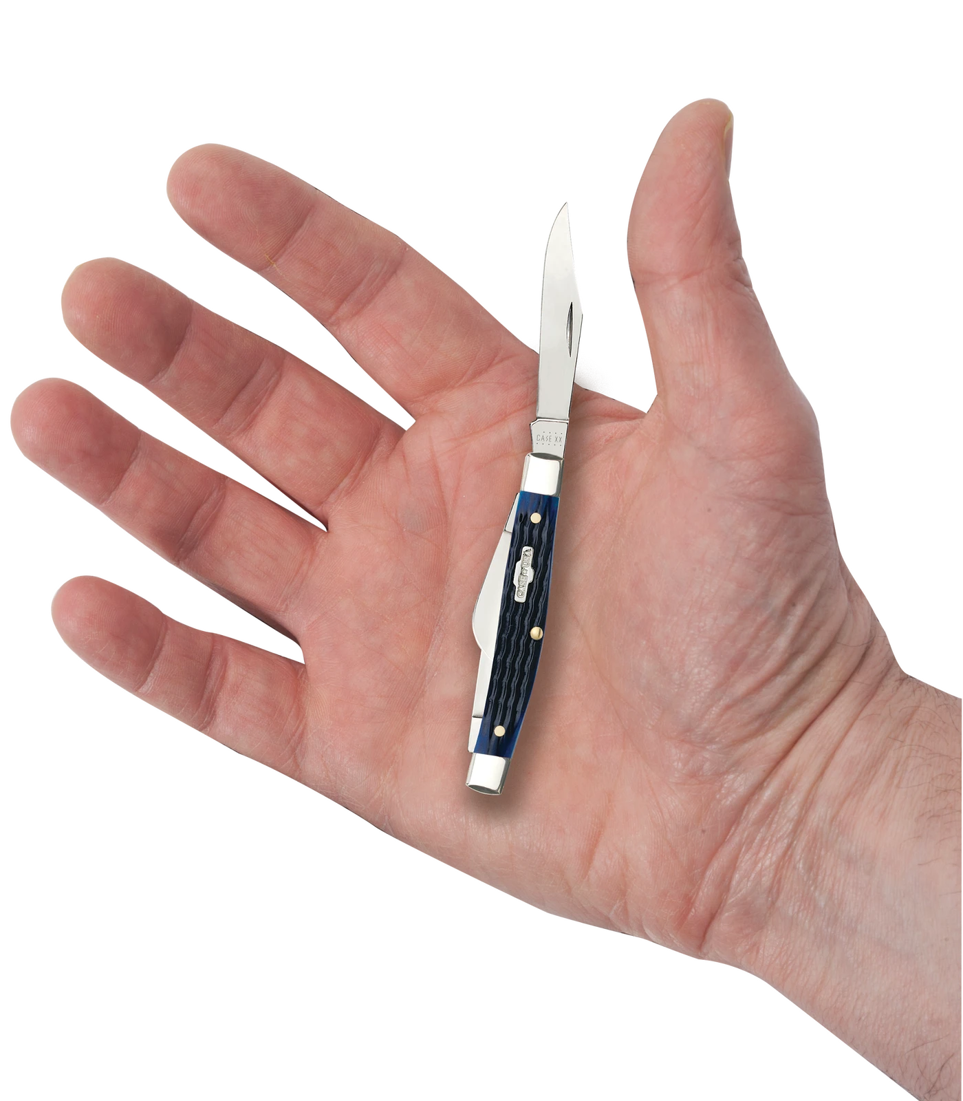 This Medium Stockman is a part of the Blue Bone Family. There’s a reason we call some friends “true blue”. That is because we know we can always count on them, no matter what. The same can be said about our Blue Bone knives. Time and again, their stainless steel blades get the job done, and their classic blue handles look even better the longer you carry them. Stockman’s pack three blades in a convenient but very practical pocket knife. The Clip and Sheepfoot blade sit on the pocket end while the Pen blade sits on the cap end. The Clip blade is commonly used as a multi-purpose blade and preferred for detail work. The Sheepfoot blade allows for added strength at the point making it great for carving and achieving a clean cut. The Pen blade is great for light work. This knife is constructed with Case Tru-Sharp™ stainless steel which is a special high-carbon steel that helps the blades hold an edge longer than conventional steel. It also offers extraordinary blade strength and corrosion resistance.