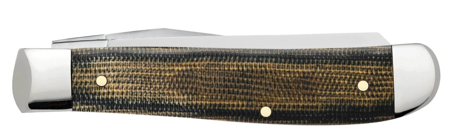Canvas Micarta® handles are sure to fill the bill in good-looking, versatile everyday carry companions. These beauties sport the Case diamond shield and mirror-polished Tru-Sharp surgical steel. Mini Trappers are a smaller version of our Trapper carrying two full length blades, the Clip blade and the Spey blade. The Clip blade is commonly used as a multi-purpose blade and preferred for detail work. The Spey blade is commonly used as an all-purpose utility blade. The basic trapping and skinning blades make this a must-have knife for those who trap small game. This knife is constructed with Case Tru-Sharp™ stainless steel which is a special high-carbon steel that helps the blades hold an edge longer than conventional steel. It also offers extraordinary blade strength and corrosion resistance. Comes conveniently packaged in a box.