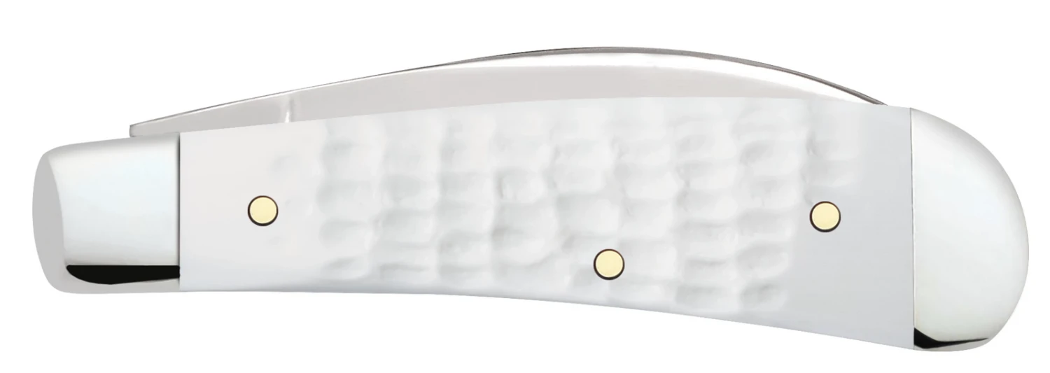 Impact resistant, pure white handles provide the perfect backdrop to this vibrant red shield. The Sway Back knife is inspired by English Jack knives from the 19th century. The elegant curve of the handle and Wharncliffe blade make this another Case-Bose success. The Wharncliffe blade makes for an excellent general purpose utility knife. From handymen requiring a quick and easy go to tool on the job to office staff opening up boxes, the Wharncliffe blade is the blade of choice. This blade is great for cutting and has a finer edge/point for increased control. It also excels in box-cutter type chores and is great for opening envelops. This knife is constructed with Case Tru-Sharp™ stainless steel which is a special high-carbon steel that helps the blades hold an edge longer than conventional steel. It also offers extraordinary blade strength and corrosion resistance.