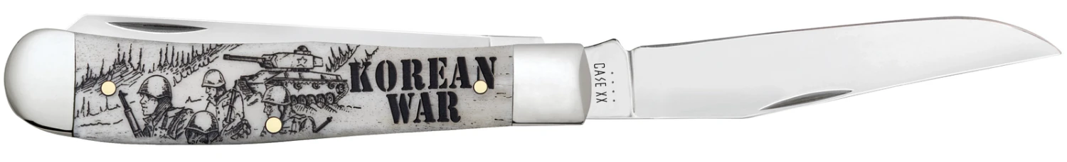 This all-new Trapper collection showcases some highly detailed handle artwork to help preserve the stories behind some of the USA’s most defining moments. The Trapper gets its name from the consumer it was designed for. Because of its basic trapping and skinning blades and its light weight, it is a must-have knife for those who trap small game. It is a jack knife with two full length blades; a slender Clip and a long Spey. The Clip blade is commonly used as a multi-purpose blade and preferred for detail work while the Spey blade is commonly used as an all-purpose utility blade. This knife is constructed with Case Tru-Sharp™ stainless steel which is a special high-carbon steel that helps the blades hold an edge longer than conventional steel. It also offers extraordinary blade strength and corrosion resistance.