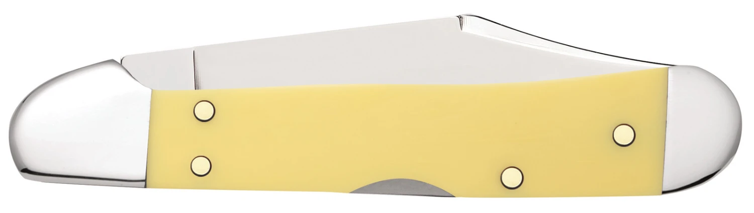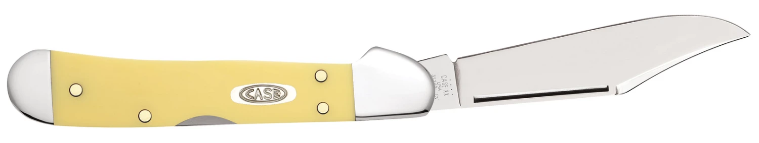 This Mini CopperLock® is a part of the Yellow Synthetic Family. The distinctive yellow handle brightens this family while maintaining its toughness, making it one of the most beloved in the Case line. The CopperLock® knife is an original design by W.R. Case that combines elements from the Trapper and Copperhead to make a new lockback knife. The Mini CopperLock® is smaller than the traditional CopperLock® without compromising durability. Featuring a fully locking clip blade, this knife has the cutting power of a lockback, with the look and feel of a traditional Case pocket knife. The Clip blade is commonly used as a multi-purpose blade that makes this pocket knife great for everyday use. This knife is constructed with our Chrome Vanadium (CV) steel. Some knife lovers will settle for nothing less than Chrome Vanadium blades, since this special formula of alloyed steel is the “original” Case blade steel. Case Chrome Vanadium blades are known for their edge-holding ability and easy re-sharpening. However, they are less resistant to rusting, pitting and discoloration than stainless steel. We recommend keeping a thin film of oil on the blade to maintain the finish. This ensures that your knife will be around for future generations to enjoy. Comes conveniently packaged in a box. Made in Bradford, PA, USA from domestic and imported materials.