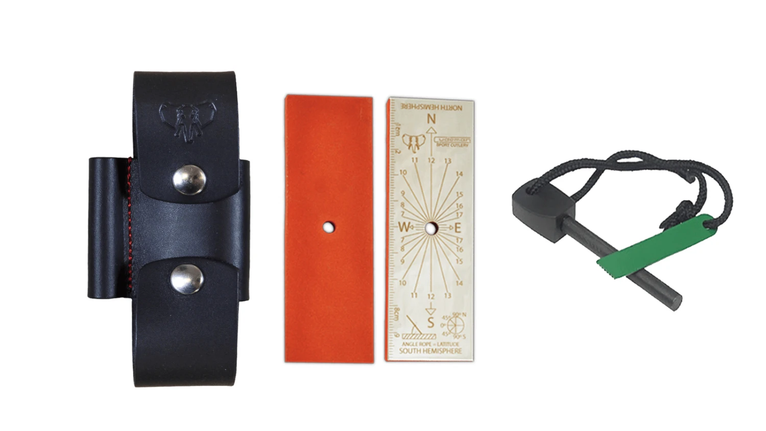 This survival knife has so many features to describe.  The knife itself has BÖHLER N-695 steel and a micarta handle with a glass breaker built in to the full tang blade. The multi-position leather sheath contains a firesteel fire starter, sharpening stone and signalling mirror. It even comes with 280cm of paracord.